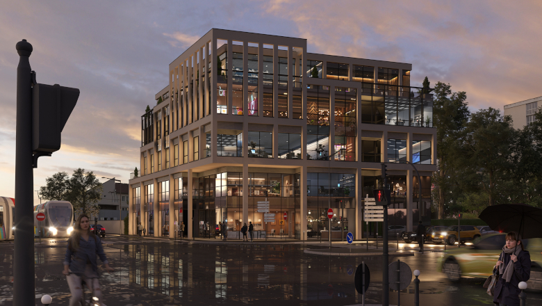 Baptisé « Hüb One », ce programme de 2 184 m² proposera des bureaux modulables à partir de 100 m², avec une modularité permettant regroupement ou cloisonnement sur mesure. Chaque étage bénéficiera de terrasses ou d’espaces extérieurs accessibles aux occupants des lieux.