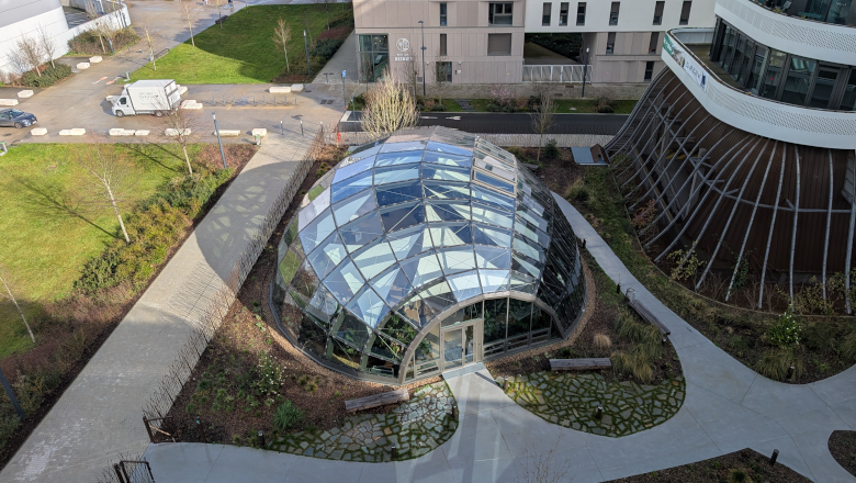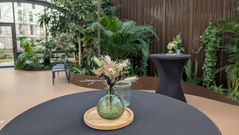 La serre méditerranéenne construite dans les jardins de l’immeuble Métamorphose peut désormais accueillir des événements. Elle complète l’offre événementielle proposée au sein du bâtiment.