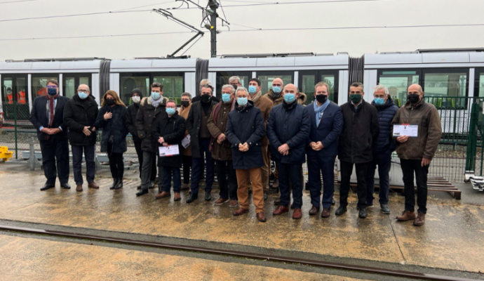 Des élus de l’agglomération ont découvert près de la Rochelle les nouvelles rames du tramway d’Angers – © Ville d’Angers
