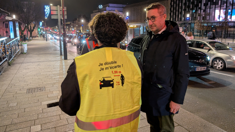 Des gilets jaunes ont été distribués aux usagers des deux roues – © Angers.Villactu.fr