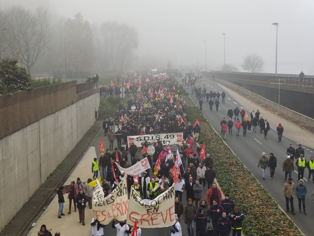 Les températures glaciales n’ont pas découragé les manifestants ce jeudi 5 décembre en Anjou. A l’appel des syndicats CGT, FO, FSU, Solidaires, UNEF et UNL, quatre manifestations avaient lieu dans le Maine-et-Loire.