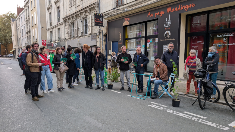 En fin de journée ce mardi 22 octobre, des militants Les Écologistes, accompagnés de membres du Parti communiste et du Parti socialiste, ont installé sur des places de parking de la rue Parcheminerie des tables et des chaises. Une manière de montrer aux passants comment l’espace occupé par les voitures pourrait être utilisé par les piétons et les commerces. « Il y a urgence à donner beaucoup plus de place aux modes de déplacement actifs qui représentent plus d’un tiers des modes de déplacements sur la ville d’Angers », indique Elsa Richard, membre de l’opposition municipale Les Écologistes.
