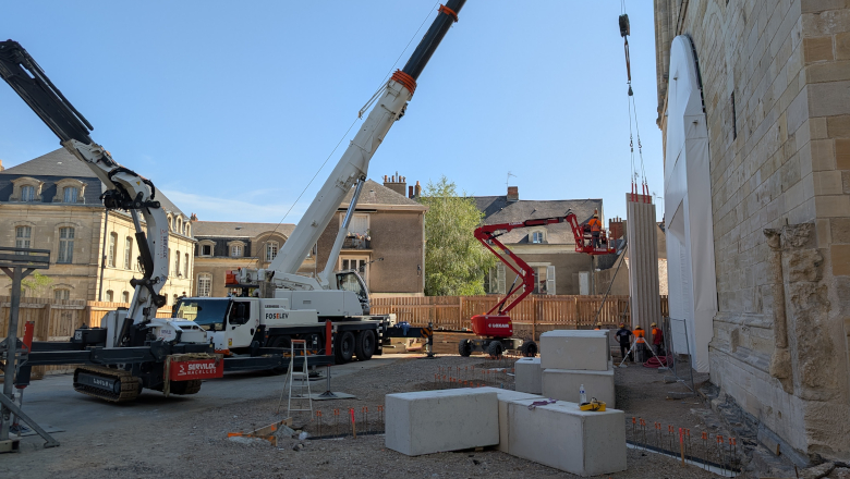 Après plusieurs mois de fouilles archéologiques et de travaux préparatoires, le premier mur de la future galerie contemporaine de la cathédrale d’Angers vient d’être posé.
