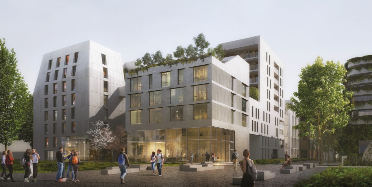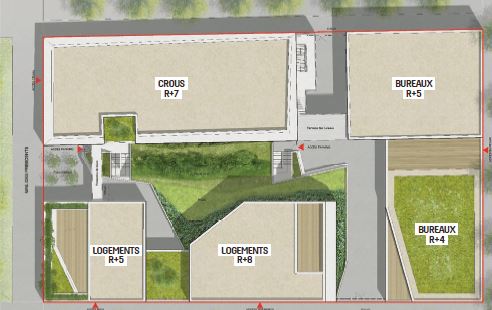 Les quatre bâtiments, de 4 à 8 étages, accueilleront 170 logements collectifs étudiants gérés par le Crous, 44 logements locatifs sociaux et 3450 m² de bureaux. Un parking en sous-sol et un jardin central viendront compléter l’ensemble immobilier.