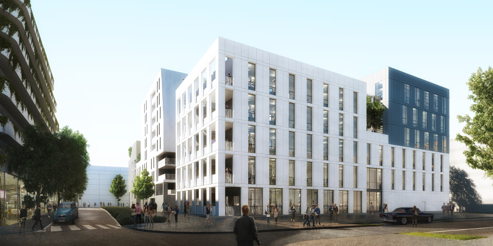 Sur plus de 12 000 m², le cabinet d’architecte Patriarche en charge du projet a voulu « installer un cœur d’îlot fortement paysager, créer des perspectives et des traversées autant visuelles que piétonnes. »