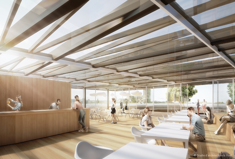 « On va créer une double façade qui va recevoir un jeu de terrasses extérieures tant pour le Café Molière qui va s’implanter au rez-de-chaussée qu’au niveau supérieur pour l’accueil d’événements. Le bâtiment sera ainsi plus transparent et plus accueillant », détaille Bruno Huet.