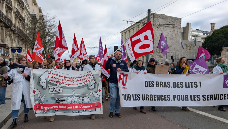Scandant « des bras, des lits pour l’hôpital public », les manifestants ont rejoint la préfecture de Maine-et-Loire où une délégation devait être reçue par le préfet.