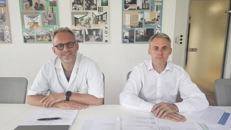 Guillaume Bouhours, vice-président de la commission médicale d’établissement et Arnaud Pouillart, directeur adjoint du CHU, ont annoncé les changements estivaux du centre hospitalier. – © Eline VionCHU