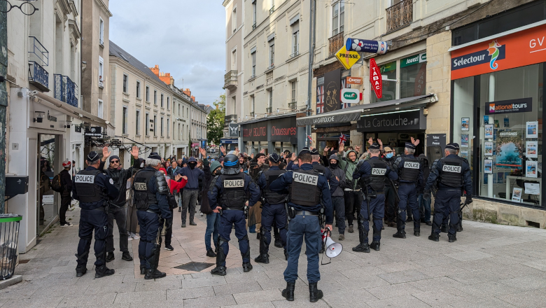 Un peu plus tôt, le réseau angevin antifasciste avait appelé de son côté à une « contre manifestation » place Imbach. Les 80 personnes réunies déploraient « l’instrumentalisation de cette affaire par l’extrême droite ». Très rapidement bloqué par les forces de l’ordre, qui ont utilisé des grenades lacrymogènes, le cortège a parcouru le centre-ville, espérant rejoindre la place du Ralliement, où se tenait le rassemblement de l’ultra-droite. La manifestation a pris fin rue Boisnet, où les forces de l’ordre ont encerclé les derniers manifestants et une nouvelle fois utilisé du gaz lacrymogène. Certains manifestants ont dû se réfugier dans une laverie, d’autres dans un bar, ou dans le hall d’un immeuble pour échapper aux gaz. La police a ensuite procédé à de nombreux contrôles d’identité.
