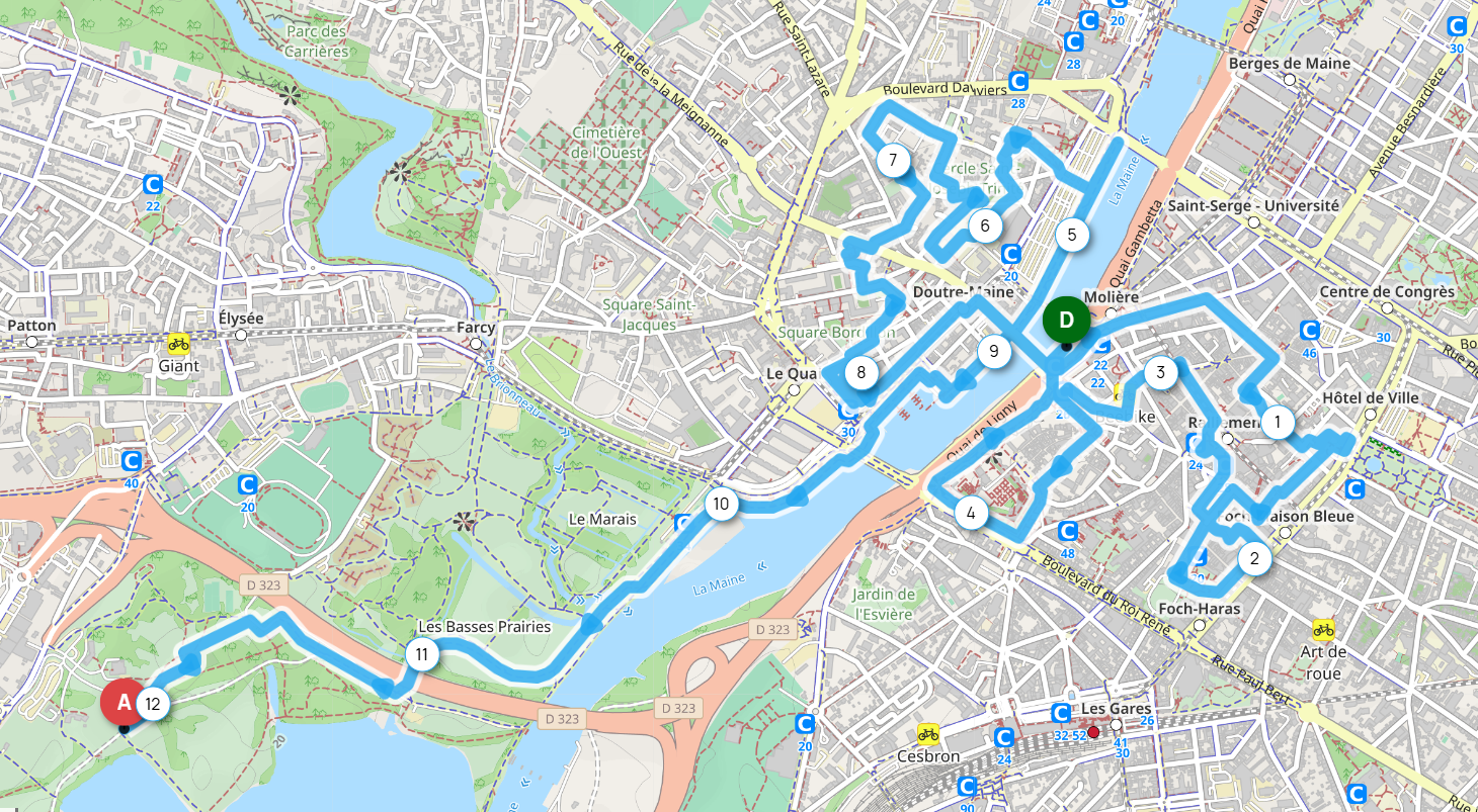 Le tracé du trail de la Cité de 12 kilomètres de Tout Angers Bouge. – © Ville d’Angers