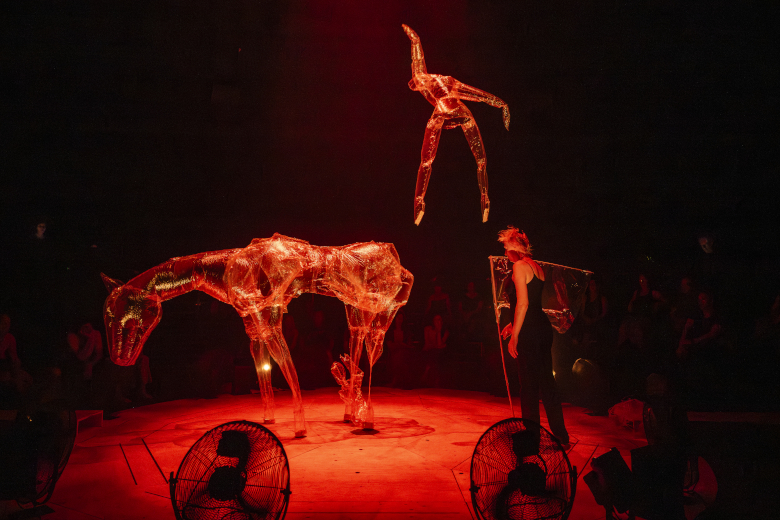 Dans cette nouvelle pièce du Cycle du vent, Phia Ménard convie le public à une expérience théâtrale sensorielle, esthétique et poétique unique dans laquelle des marionnettes de plastique prennent vie sous les effets conjugués des mouvements de l’air et de la manipulation.