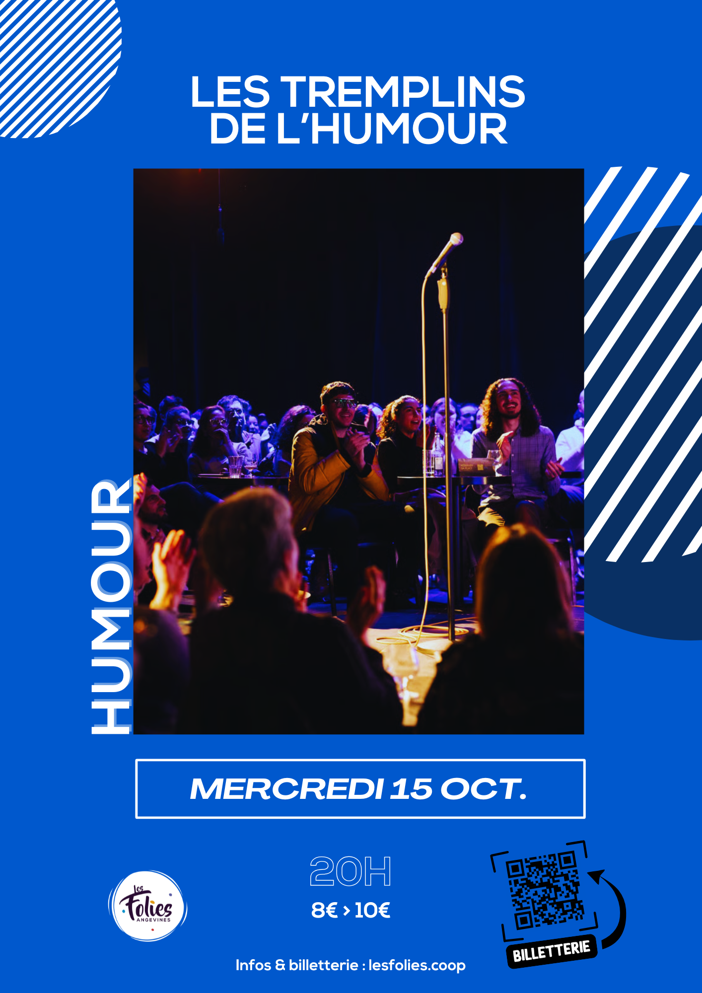 Rendez-vous ce mercredi 15 octobre à 20 heures pour les Tremplins de l’humour. À chaque édition, 4 à 5 humoristes montent sur scène pour convaincre le public et le jury avec leurs meilleurs sketchs. C’est vous qui votez pour départager les candidats et désigner ceux qui décrocheront leur ticket pour les demi-finales… en route vers la grande finale des Tremplins !